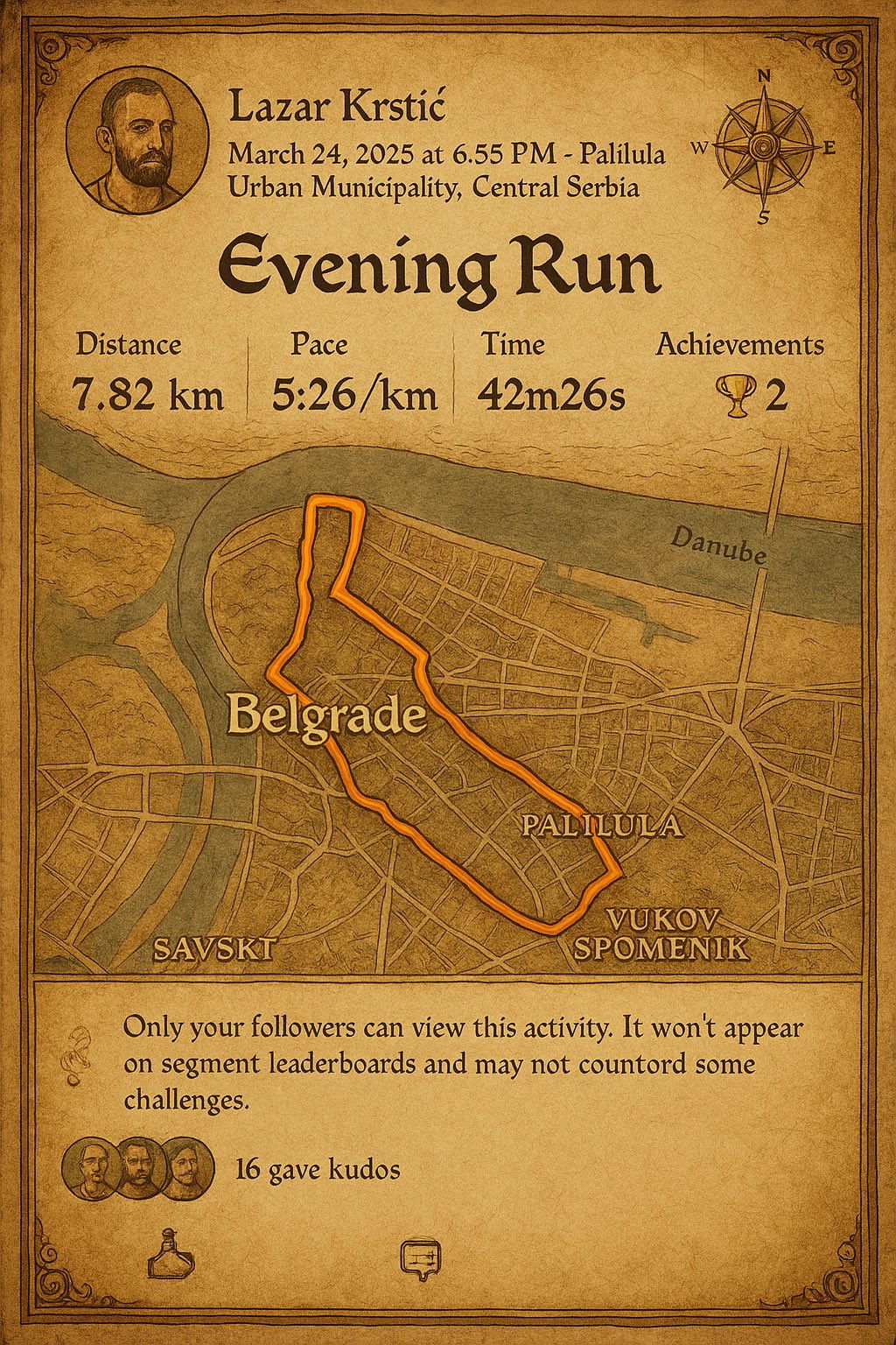 Upload any route screenshot from Strava, Nike Run Club, or your favorite fitness app. Get personalized artwork in 30 seconds.