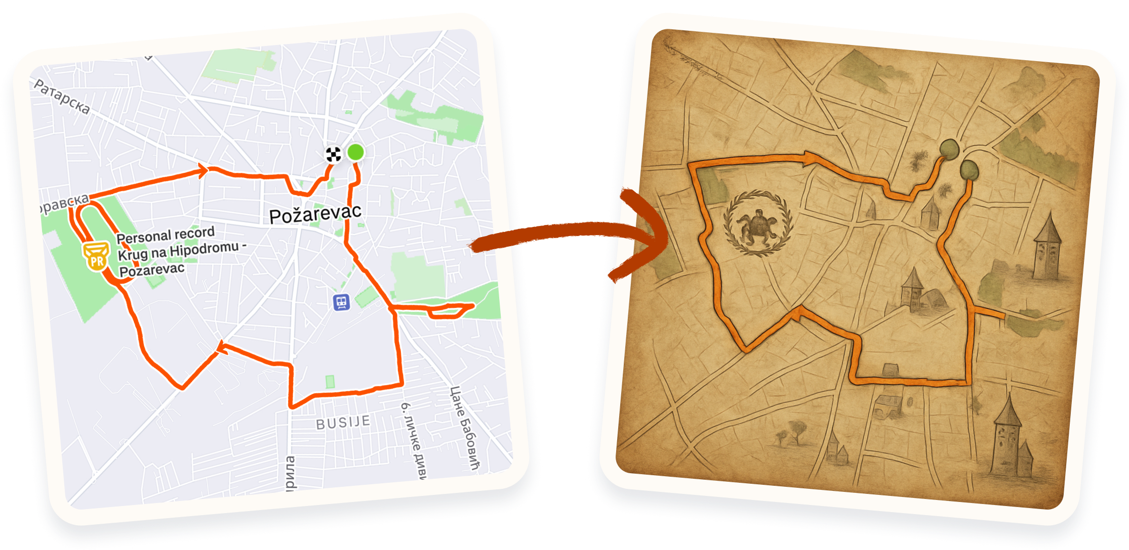 Choose from 15+ preset styles or describe your own vision - from vintage maps to neon arcade, or create something completely unique.