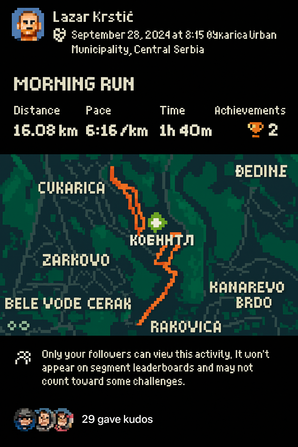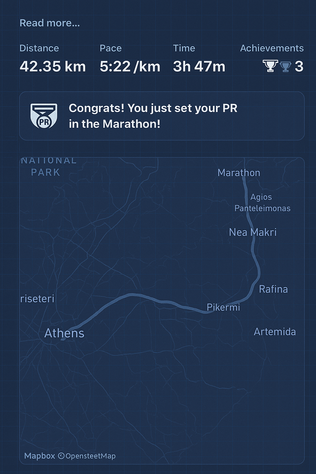 Upload any route screenshot from Strava, Nike Run Club, or your favorite fitness app. Get personalized artwork in 30 seconds.